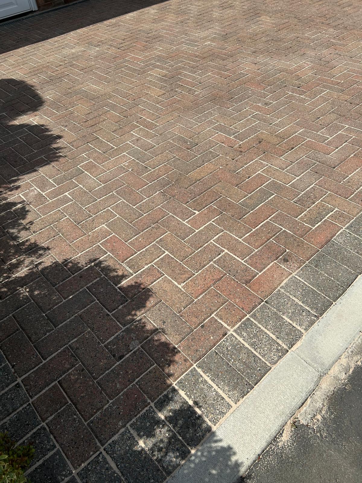 Rinsing & Final Touches: After thoroughly cleaning, we rinse the driveway to remove any residual dirt or cleaning agents, leaving behind a spotless surface. We also come back and re-sand your driveway to ensure it looks as good as new!